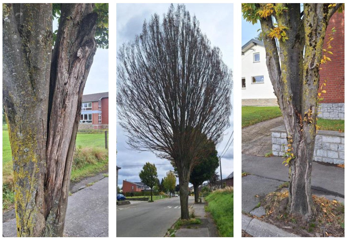 - Faulstellen mit der Gefahr des Auseinanderbrechens des Baumes